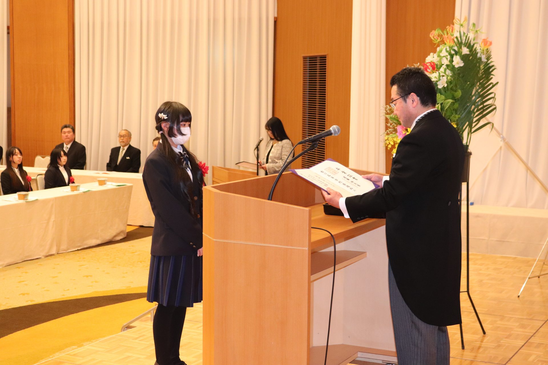 卒業生代表の遠藤妙矢香さんから「私たちは通信制での学習を通して『自分の足で歩む』という強さを手に入れることができました。これから先も、自分の選択を信じ、未来を切り拓いてまいります。どうかこれからも、私たちの歩みを温かく見守っていただければ幸いです。」と誓いの言葉が述べられました。